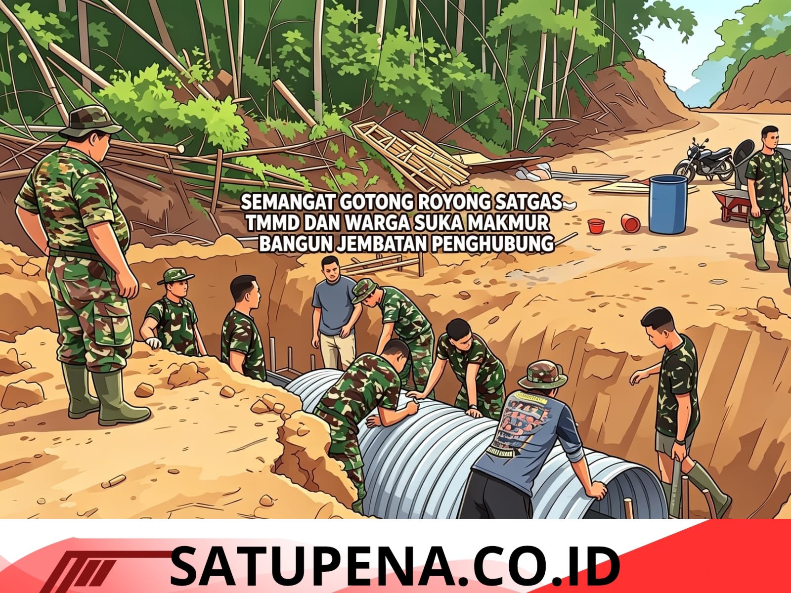 Aceh Tamiang –Satupena.co.id: Program TNI Manunggal Membangun Desa (TMMD) Reguler ke-128 yang dilaksanakan Kodim 0117/Aceh Tamiang terus menunjukkan progres signifikan. Salah satu sasaran fisik yang tengah dikerjakan adalah pembangunan Jembatan Aramco titik lima di Desa Suka Makmur, Kecamatan Sekerak, Kabupaten Aceh Tamiang, Kamis (30/04/2026).