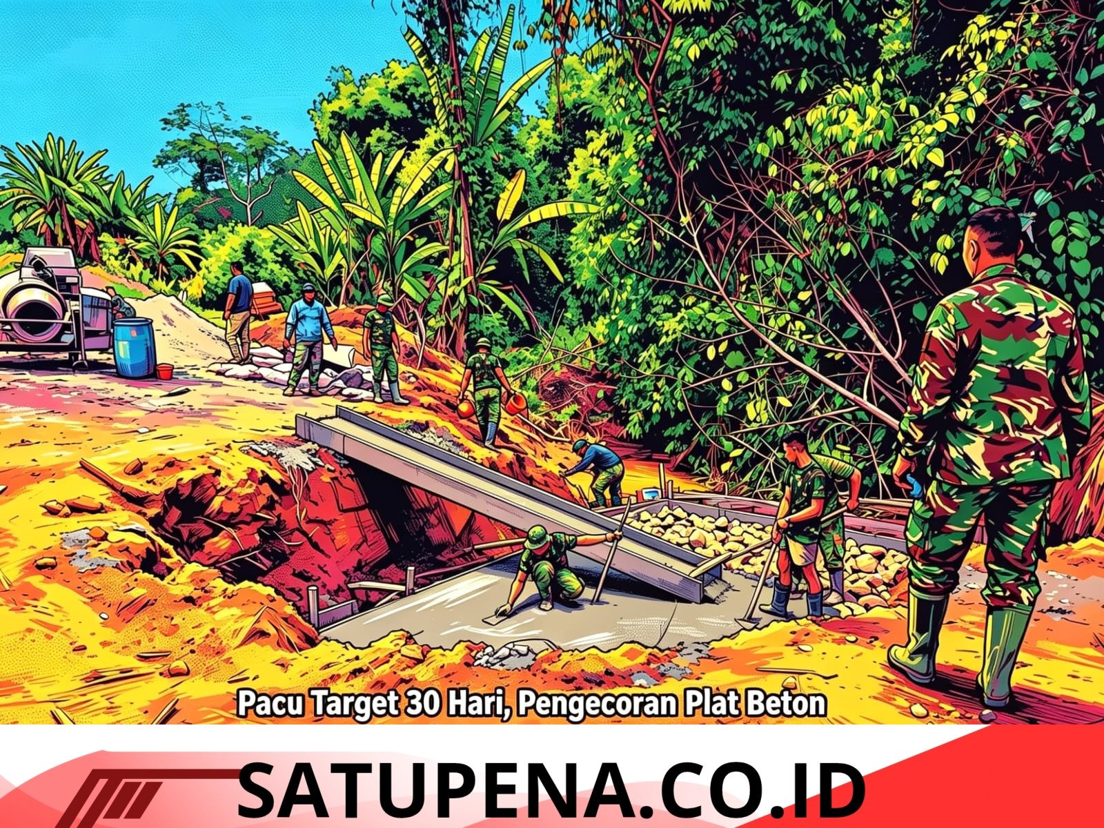 Di lokasi pembangunan, anggota Satgas TMMD bersama warga tampak bekerja bahu-membahu menyelesaikan pemasangan struktur jembatan dengan penuh ketelitian. Sinergi yang terjalin kuat ini menjadi gambaran nyata kemanunggalan TNI dengan rakyat dalam mendukung percepatan pembangunan di wilayah pedesaan.