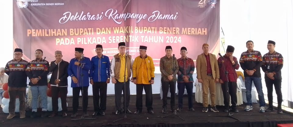 Deklarasi Pemilu Damai yang di ikuti empat pasangan calon Bupati Bener Meriah serta seluruh pengurus Partai pengusung serta ratusan masa pendukung itu berjalan lancar damai dan tertib.