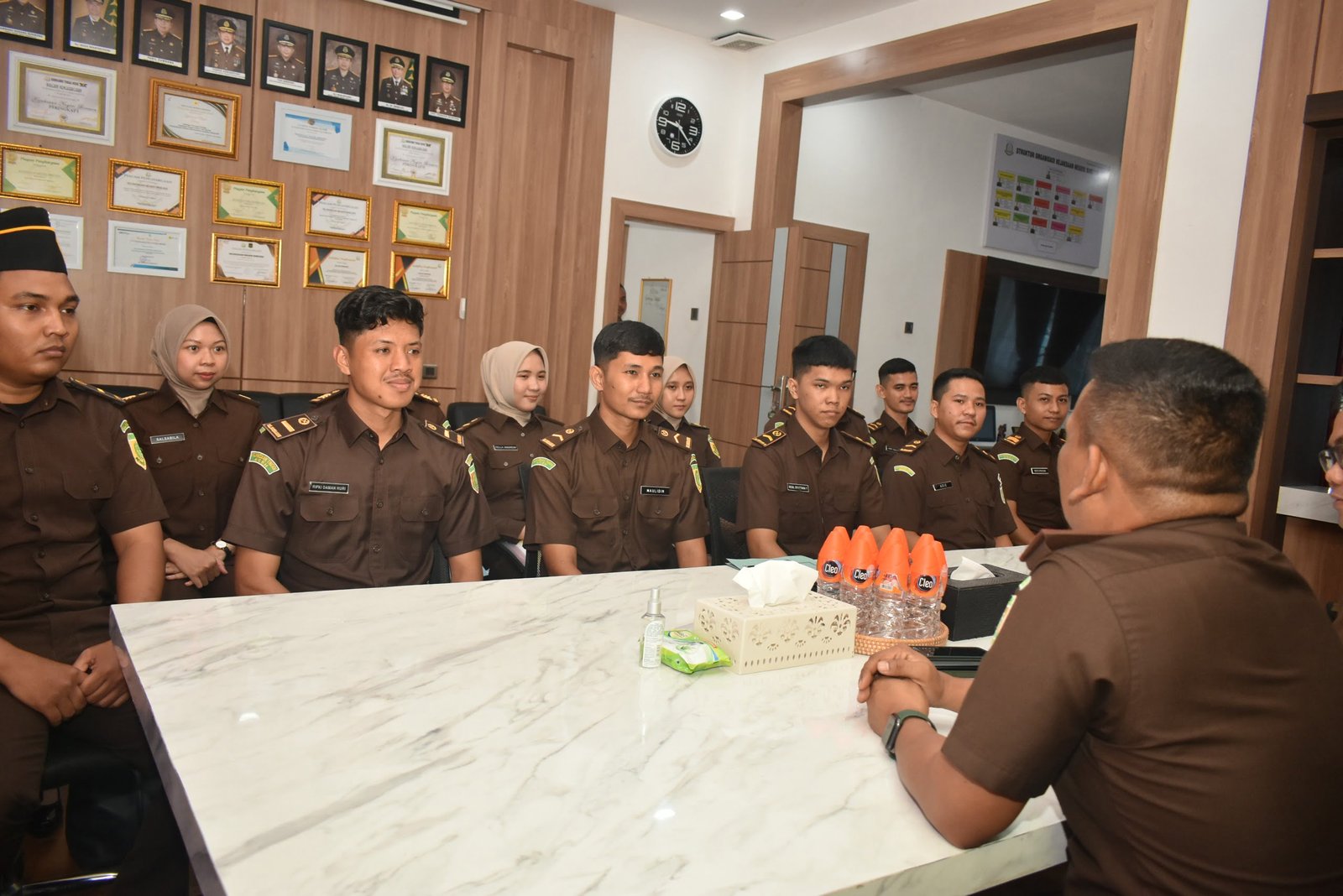 Setelah memberikan pengarahan Kajari Bireuen melalui Kasi Intelijen mengajak pegawai baru untuk memperkenalkan diri kepada seluruh pegawai dan melihat ruangan seluruh seksi yang ada di Kejaksaan Negeri Bireuen diantaranya ruangan Pembinaan, Pidsus, Pidum, Datun, Intel, Barang Bukti dan ruang staf lainnya.