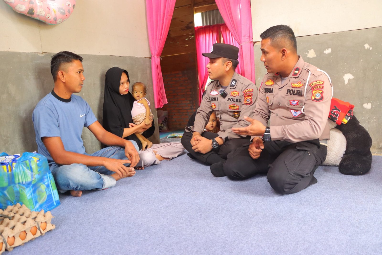Kepala Kepolisian Resor Aceh Tamiang AKBP Muliadi, S.H, M.H diwakili KBO Sat Lantas Ipda Indra Maulana dan Briptu M.Yulia Rizki berkunjungan ke kediaman Kanzia Afsheen di dusun gembira Desa Ingin jaya kecamatan Rantau. Pada Rabu (05/02/2025).