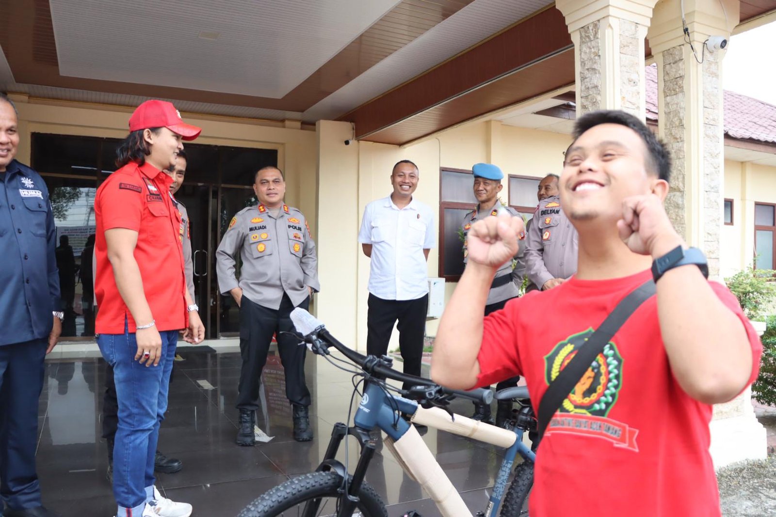 Tapi suasana berubah jadi haru ketika Kapolres memberikan kejutan: satu unit sepeda baru sebagai pengganti. Amin langsung tersenyum lebar, senang banget, dan tak bisa menyembunyikan rasa bahagianya.