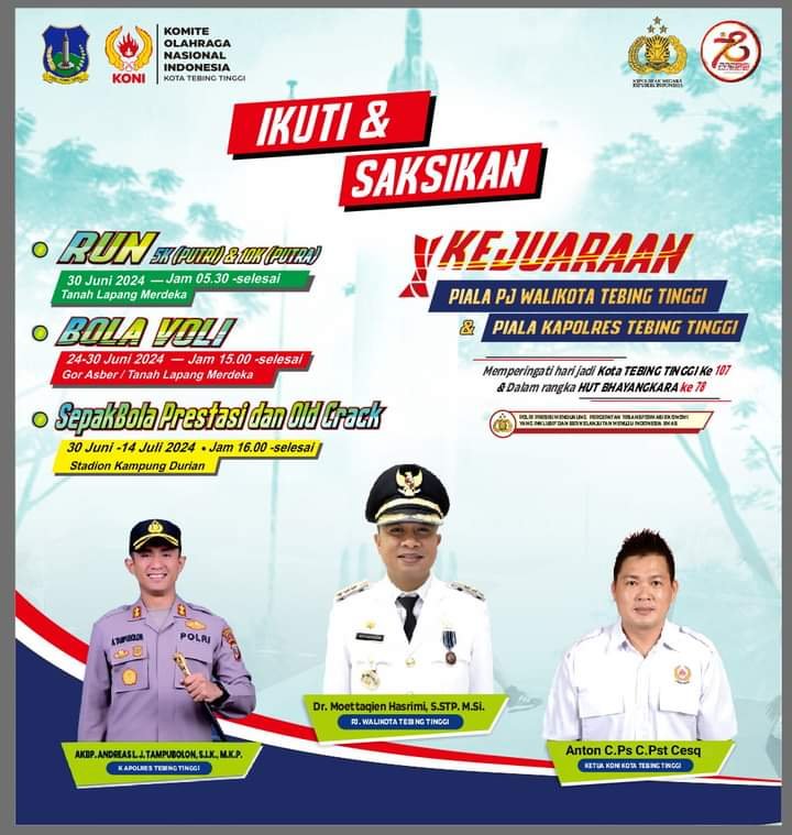 “Pelaksanaan lomba ini menjadi agenda dalam memeriahkan Peringatan Hari Bhayangkara ke-78 dan Hari Jadi Kota Tebing Tinggi ke-107 Tahun,” ucapnya.