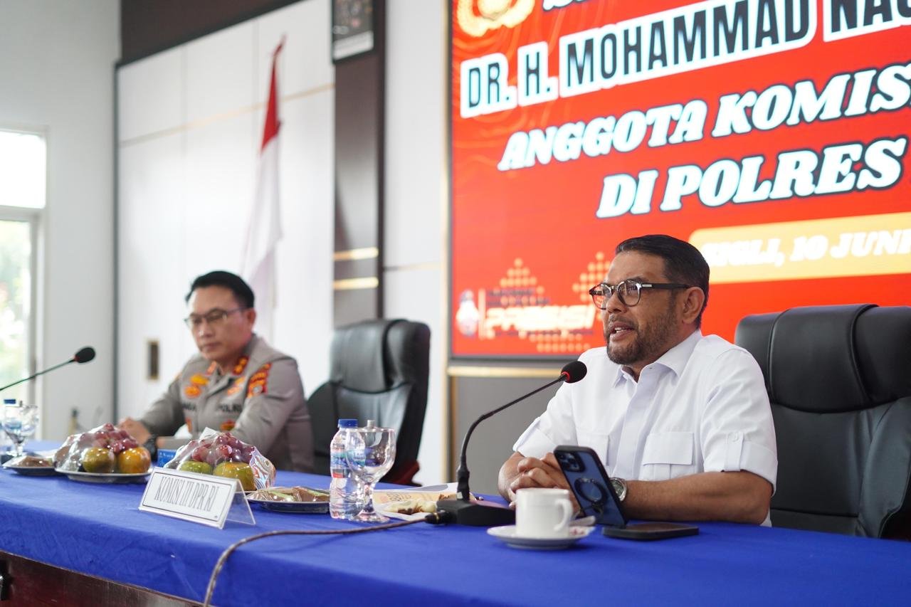H. M. Nasir Djamil mengapresiasi kinerja Polres Pidie dan menekankan pentingnya peningkatan pelayanan publik serta penguatan fungsi pengawasan internal demi terciptanya kepolisian yang profesional dan terpercaya.