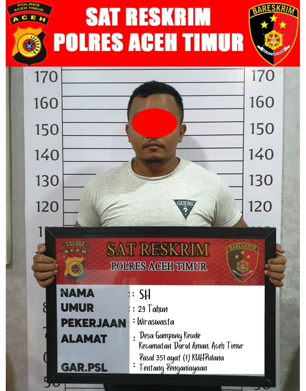 Rizal menyebutkan, peristiwa penganiayaan tersebut terjadi pada hari Sabtu, (14/03/2024) di Desa Gampong Keude, Kecamatan Darul Aman.