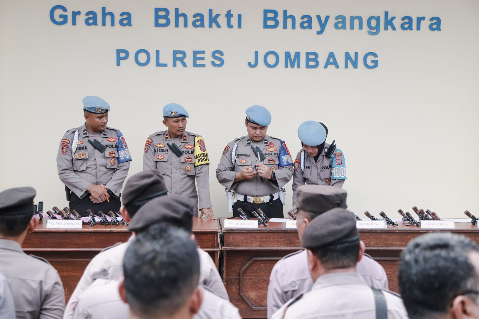 Jombang –Satupena.co.id: Seksi Propam Polres Jombang memeriksa 101 senjata api (Senpi) milik anggota. Pemeriksaan ini dilakukan untuk mencegah penyalahgunaan senpi dalam bertugas.
