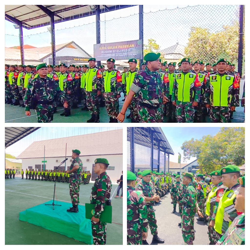Dalam rangka memastikan kesuksesan dan keamanan Pemilihan Kepala Daerah (Pilkada) serentak tahun 2024 di wilayah Kabupaten Pidie dan Pidie Jaya, Kodim 0102/Pidie menggelar apel kesiapan pasukan. Apel gelar pasukan tersebut dipimpin langsung oleh Komandan Kodim 0102/Pidie, Letkol Inf Abd. Jamal Husin M. Han.