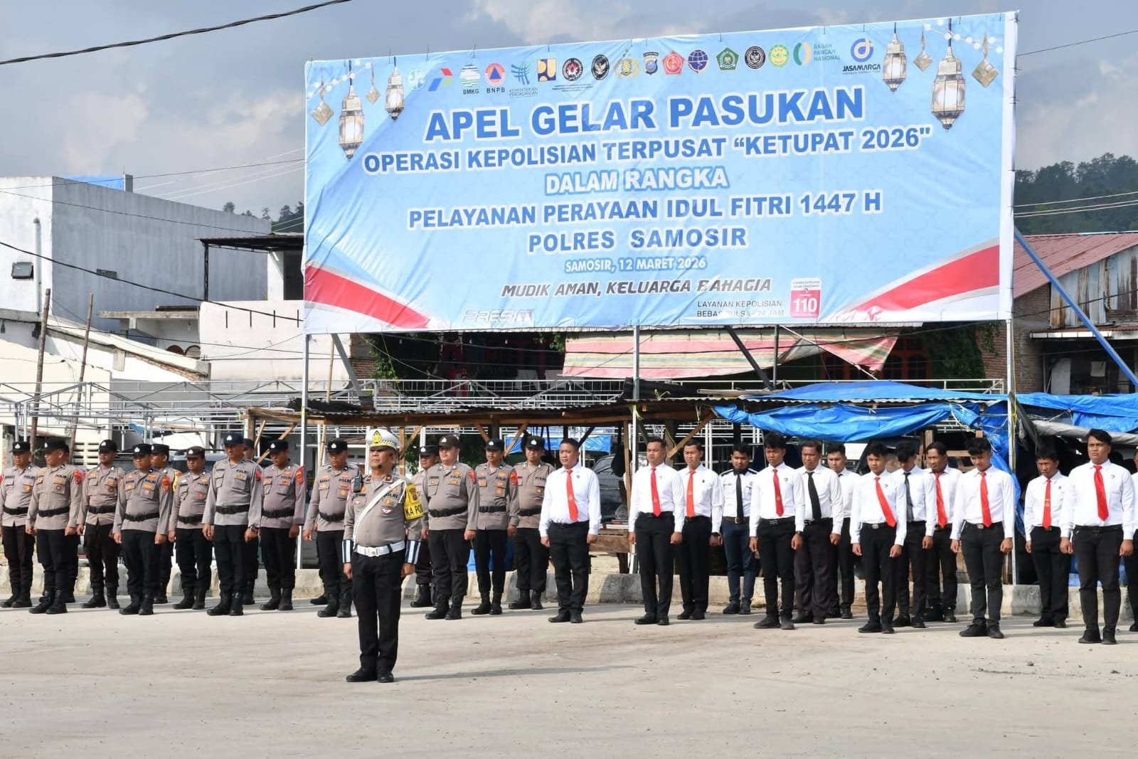 Pemerintah Kabupaten Samosir menurunkan sejumlah personel untuk mendukung pelaksanaan Operasi Ketupat Toba 2026 yang digelar menjelang Hari Raya Idul Fitri 1447 H. Personel dari Satpol PP, Pemadam Kebakaran, Dinas Perhubungan dan Dinas Kesehatan mengikuti Apel Gelar Pasukan Operasi Ketupat Toba 2026 yang berlangsung di Segmen V Waterfront Pangururan, (14/3/2026).