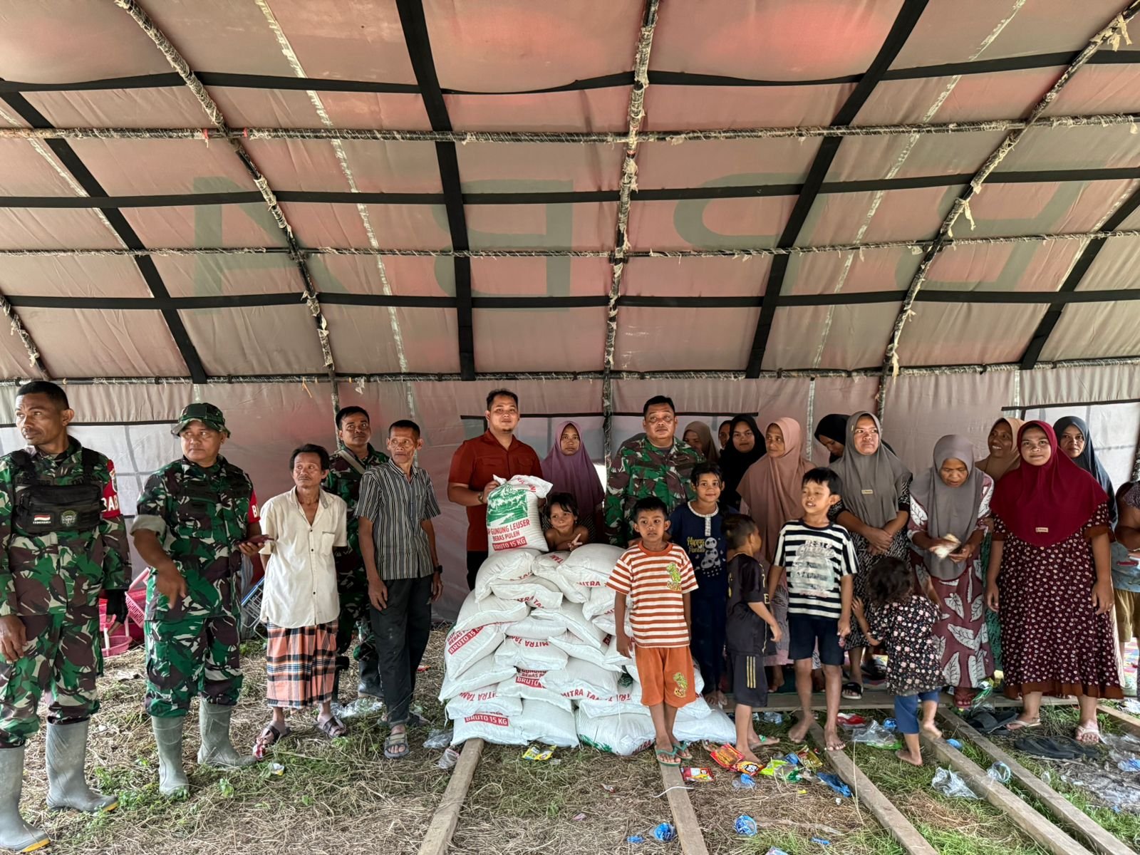 “Aryo Fazli, KK, SH, di dampingi Danposramil Darul Hasanah Kodim 0108/Agara Peltu Dedi Cahyadi beserta Babinsa, menyerahkan langsung bantuan beras tersebut kepada warga yang terdampak banjir,”  sebutnya.