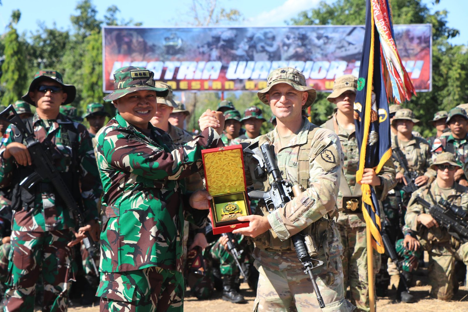 Jawa timur -satupena.co.id: Pendiv2 – Asops Kasdivif 2 Kostrad Kolonel Inf Medi Hariyo Wibowo, M.M.S.C. secara resmi menutup jalannya Latihan bersama “Ksatria Warrior 2024” antara TNI AD (Kostrad) dan US Army yang dilaksanakan di Lapangan Dodiklatpur V/Brw, Ds. Kedunglo, Kec. Asambagus, Kab. Situbondo, Jawa Timur. Senin (26/8/2024).