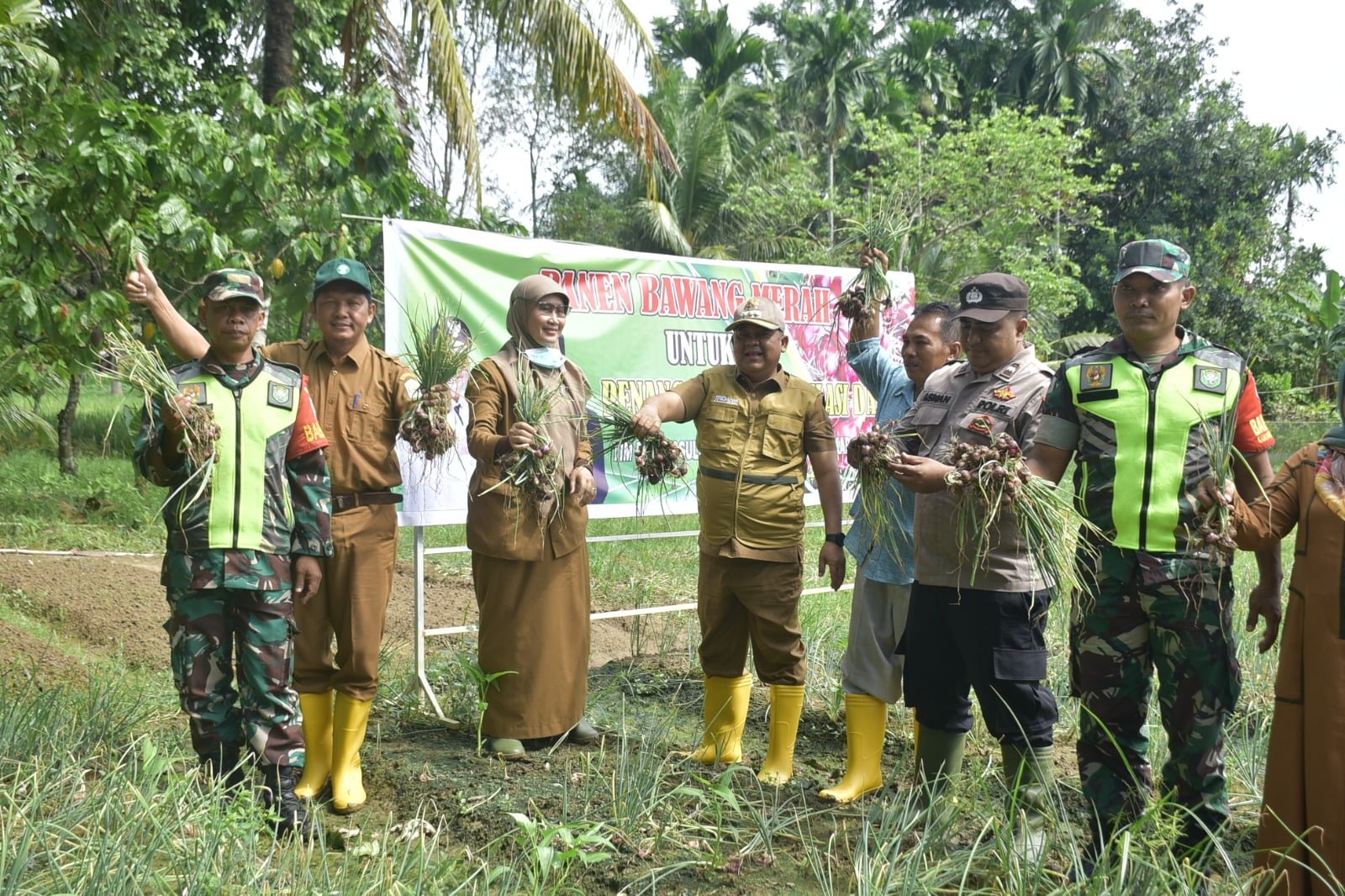 Pj. Bupati Aceh Tamiang, Drs. Asra, secara simbolis memulai gerakan panen bawang merah di Kampung Suka Jadi, Kecamatan Banda Mulia.
