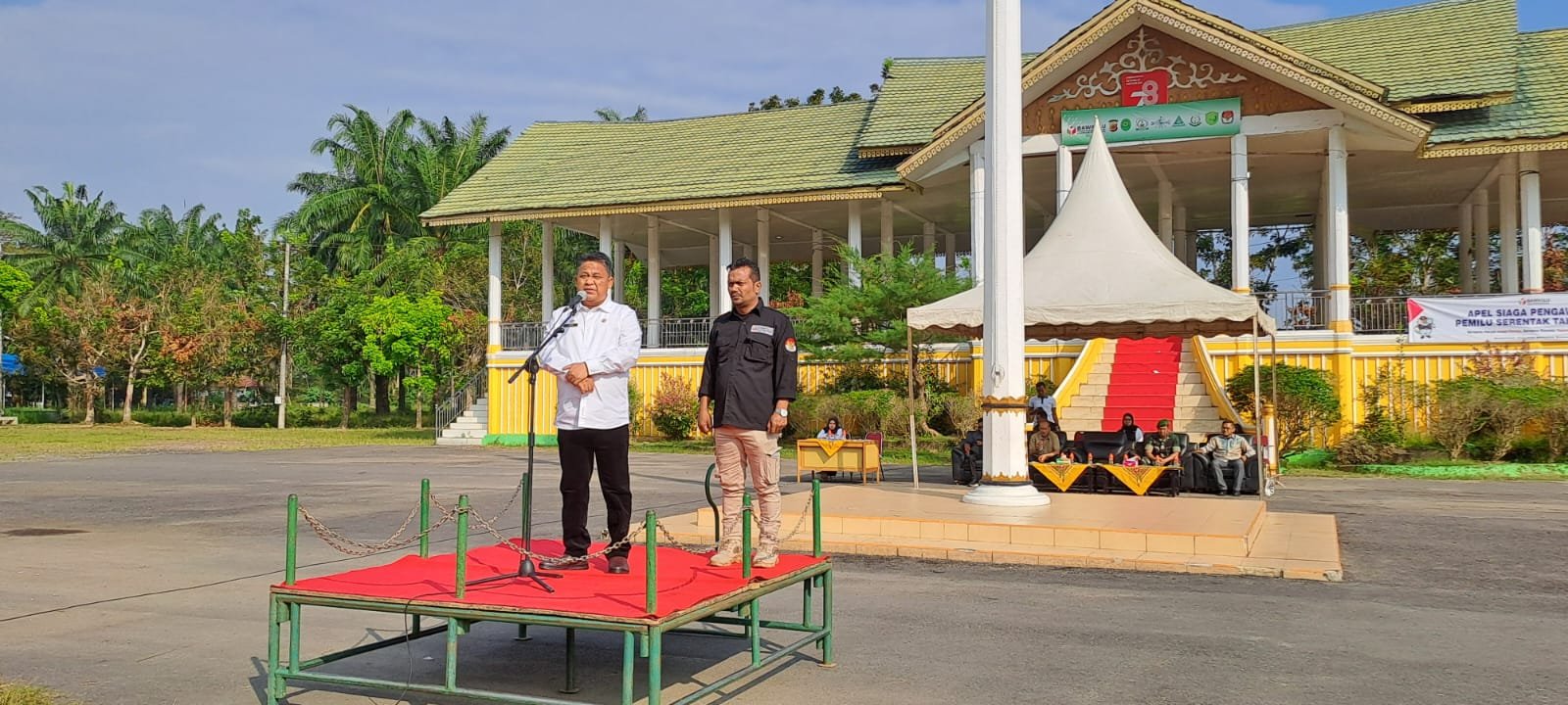 Tampak hadir mengikuti apel siaga, unsur Forkopimda, Plt. Sekretaris Daerah, Tri Kurnia, Kasatpol PP dan WH, Oki Kurnia, para Komisioner Panswaslu, dan seluruh pengawas Pemilihan Umum Serentak Tahun 2024.(Basyar).