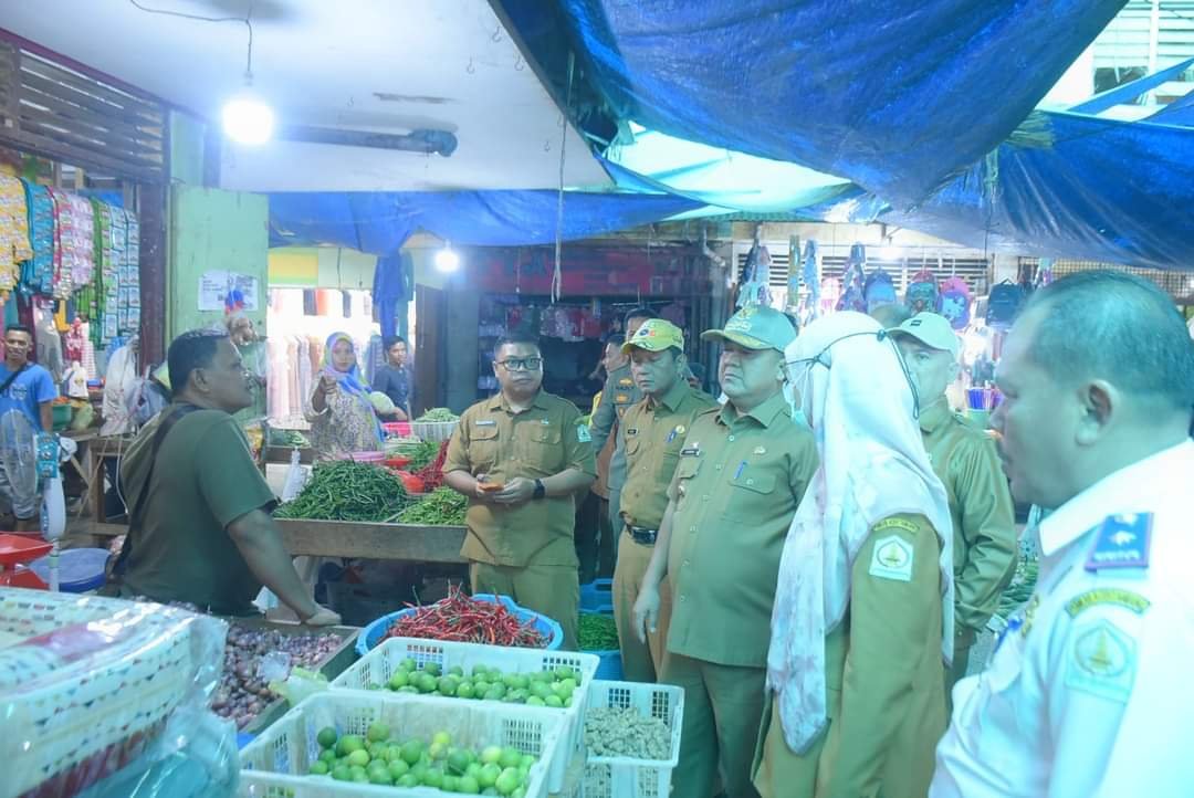 Pj. Bupati Aceh Tamiang, Drs. Asra bersama TPID meninjau harga sejumlah bahan pokok cenderung turun dalam kurun waktu sebulan terakhir. Kegiatan dilakukan pada Selasa (23/07/2024).
