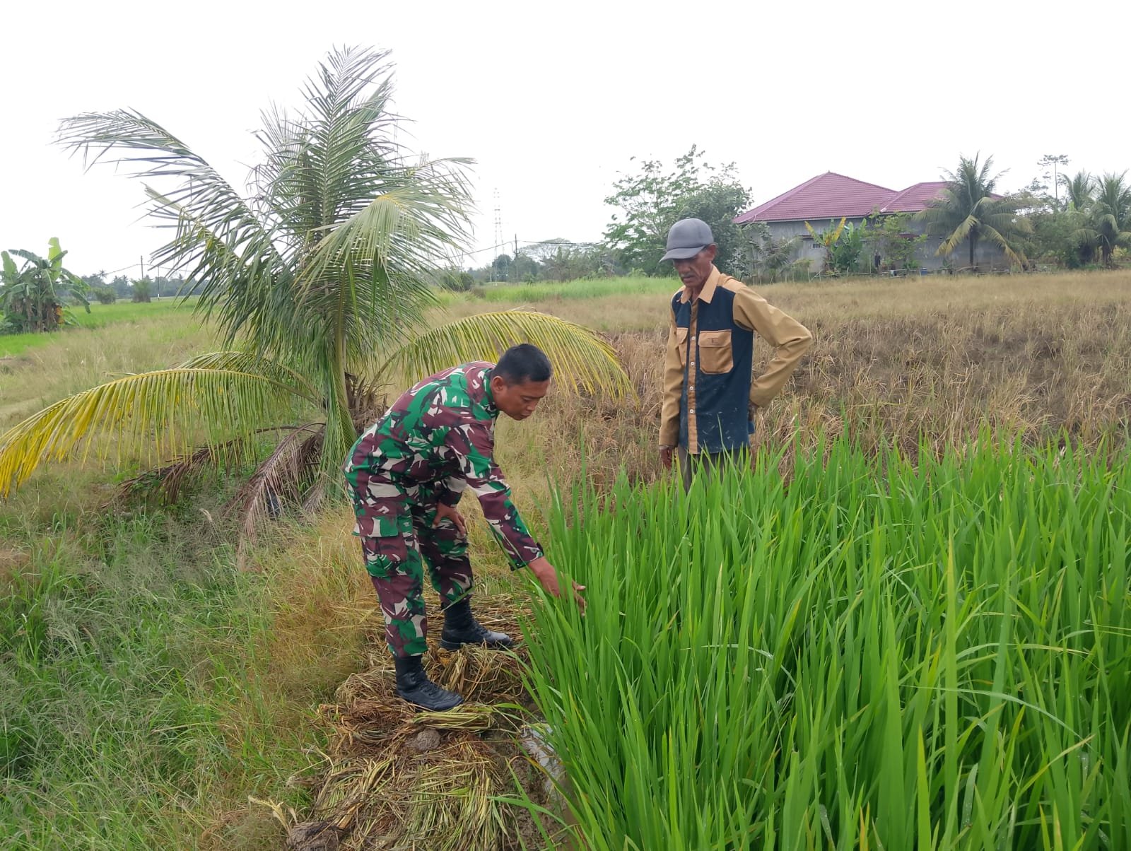 Pendampingan ini merupakan bagian dari peran strategis Babinsa sebagai motor penggerak di wilayah binaan, sekaligus motivator bagi petani agar tetap semangat dalam mengelola lahan pertanian.