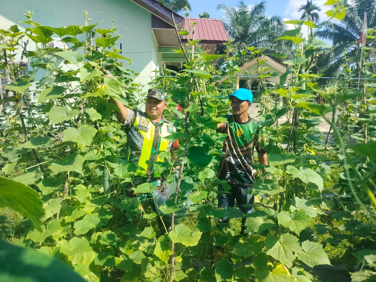 Pendampingan ketahanan pangan terus dilakukan Babinsa jajaran Kodim 0117/Aceh Tamiang Pendampingan pertanian dilakukan Para Babinsa tidak hanya bagi petani padi saja namun termasuk petani sayur Seperti yang dilakukan Serda M. Andi Babinsa Koramil 06/Manyak Payed melaksanakan pendampingan pertanian tanaman timun Desa Lhok Medang Ara, Kecamatan Manyak Payed, Kabupaten Aceh Tamiang. Jumat ((14/03/2025)