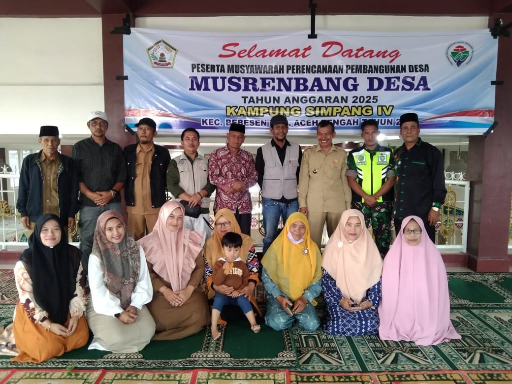 Kegiatan ini dihadiri oleh Camat Bebesen Hermansyah, S.STP.diwakilkan oleh Sekcam, Kepala desa simpang IV Bebesen Sabirin Rb, Babinsa Koramil 02/Bebesen Srd Damar Santosa, Babinkantibmas Desa Simpang IV Bebesen Aiptu Salmandi, Pendamping Desa Simpang IV Iskandar, RGM Simpang IV Bebesen, Imam kampung Simpang IV, Tokoh Masyarakat Desa Simpang IV Bebesen, Ibu-ibu PKK kampung Simpang IV Bebesen serta perwakilan dari berbagai elemen masyarakat. Musyawarah tersebut bertujuan untuk menyusun rencana pembangunan desa yang berorientasi pada kebutuhan masyarakat, mencakup sektor infrastruktur, pendidikan, kesehatan, serta pemberdayaan ekonomi warga.