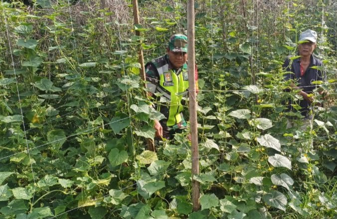 Bintara Pembina Desa (Babinsa) Koramil 03/Seruway Serda Mukhlis melaksanakan kegiatan pendampingan dengan membantu petani cek pertumbuhan timun di Desa Muka Sei Kuruk, Kecamatan Seruway, Kabupaten Aceh Tamiang. Senin (06/05/2024)