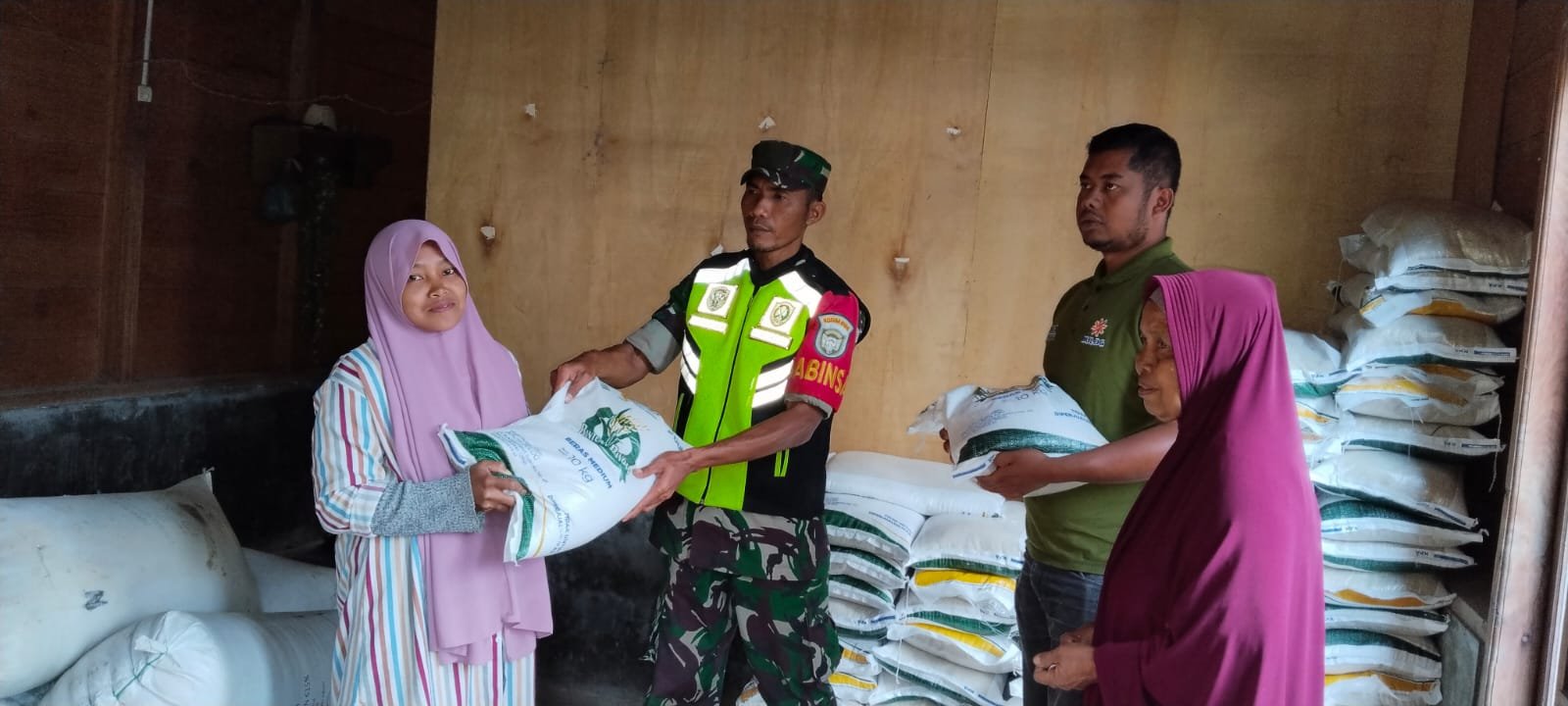 Aceh Tengah, Satupena.co.id. – Babinsa Koramil 05/Linge, Kodim 0106/Aceh Tengah, Sertu Yogi Arsadi melaksanakan pendampingan kegiatan pembagian bantuan pangan dari Pemerintah Daerah Aceh Tengah, Jumat (16/8/2025).