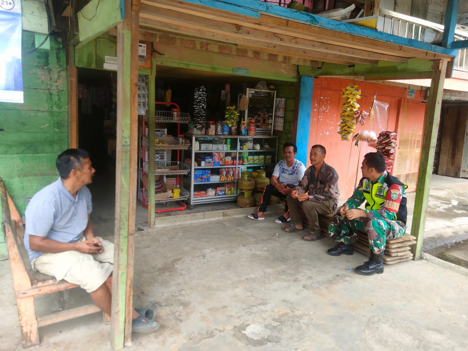 Aceh Tengah ,Satupena.co.id.– Babinsa Koramil 05/Linge, Kodim 0106/Aceh Tengah, Serda Sandroto, melaksanakan kegiatan komunikasi sosial (komsos) dengan masyarakat Desa Kute Robel, Kecamatan Linge, Kabupaten Aceh Tengah. Salah satu yang dikunjungi adalah kedai milik Bapak Aman Sahara.