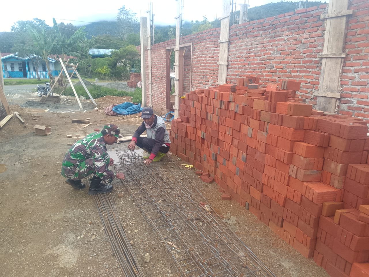 Babinsa Koramil 06/Jagong Bantu Warga Merangkai Besi untuk Pengecoran Rumah di Desa Jeget Ayu