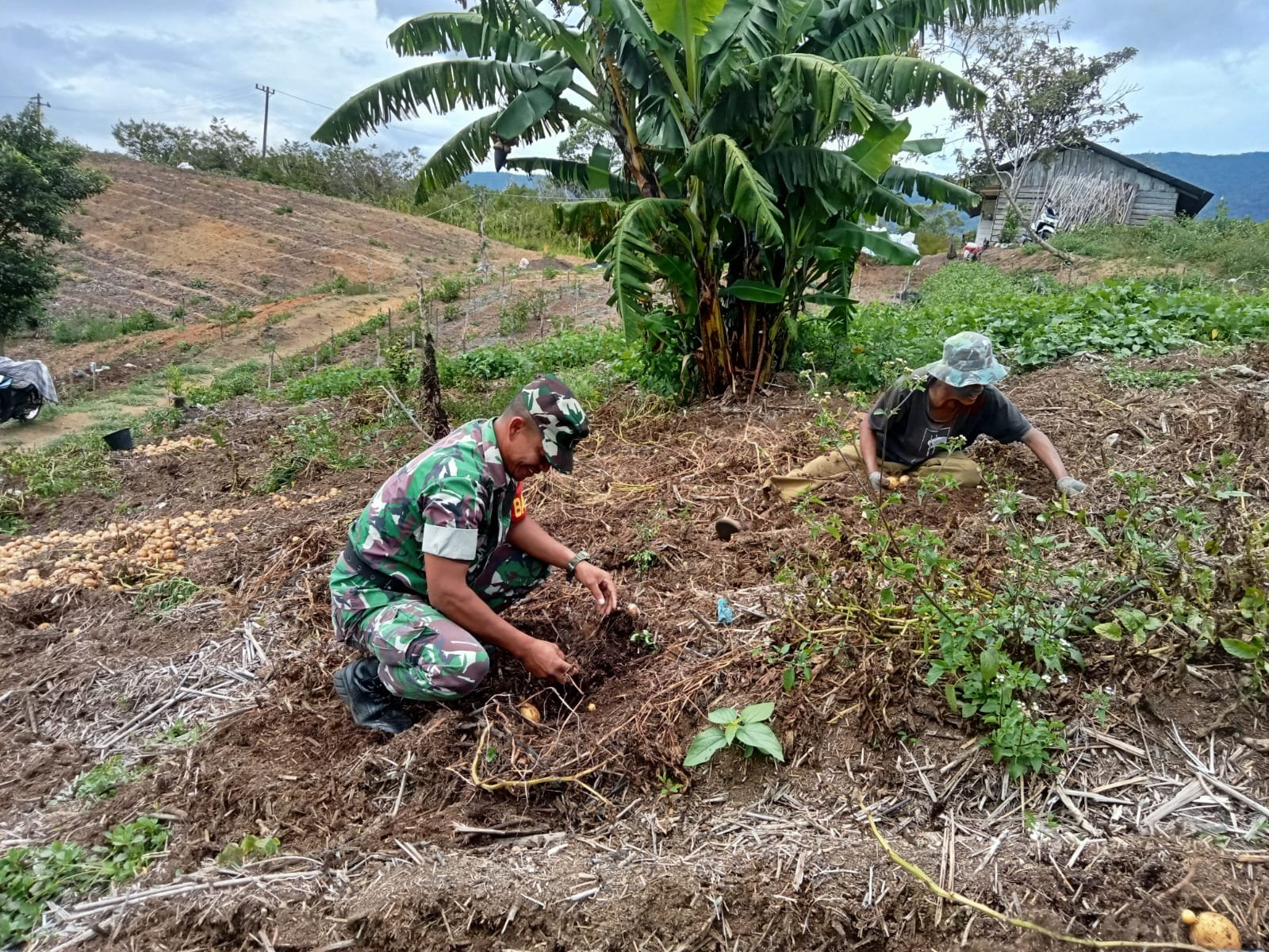 Aceh Tengah, Satupena.co.id.– Sebagai wujud nyata kemanunggalan TNI dengan rakyat, Babinsa Koramil 06/Jagong, Kodim 0106/Aceh Tengah, Serda Juliadi, melaksanakan kegiatan ketahanan pangan dengan membantu masyarakat memanen kentang di Desa Paya Dedep, Kecamatan Jagong Jeget, Rabu (3/9/2025).