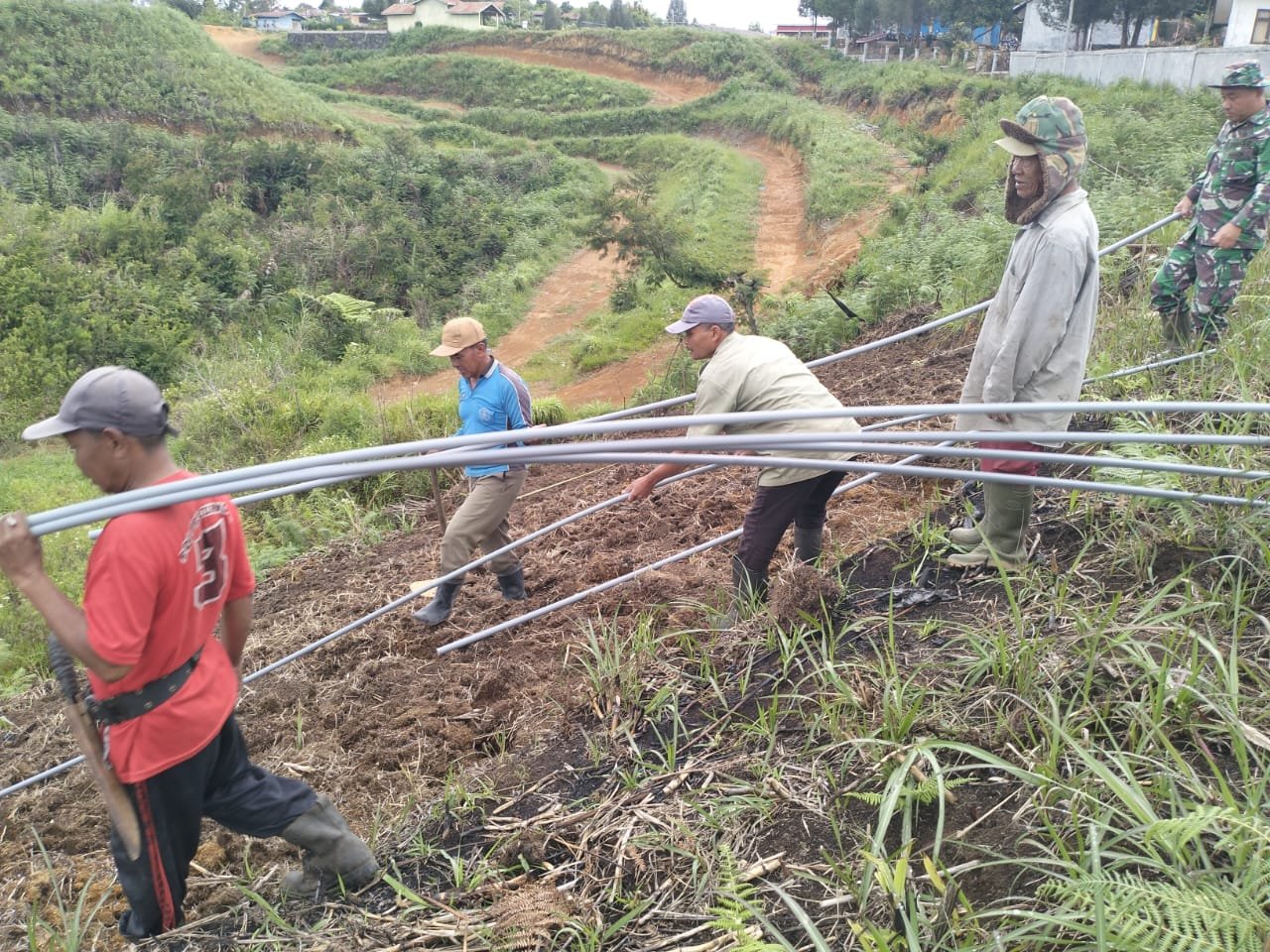 Aceh Tengah, Satupena.co.id. – Sebagai wujud kemanunggalan TNI dengan rakyat, Babinsa Koramil 07/Atu Lintang, Kodim 0106/Aceh Tengah, Sertu Moh. Muhni bersama warga melaksanakan kegiatan Karya Bakti pemasangan pipa air bersih di Desa Atu Lintang, Kecamatan Atu Lintang, Minggu (12/10/2025).