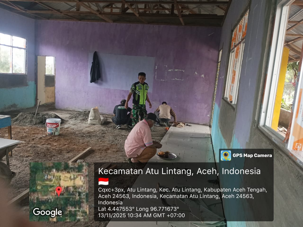 Aceh Tengah, Satupena.co.id. – Sebagai wujud kemanunggalan TNI dengan masyarakat, Babinsa Koramil 07/Atu Lintang, Kodim 0106/Aceh Tengah, Serda Zikran Sahadat, bersama warga Desa Atu Lintang melaksanakan kegiatan karya bakti berupa pengecoran dan pemasangan keramik lantai di SMP Negeri 20 Takengon, Jumat (14/11/2025).
