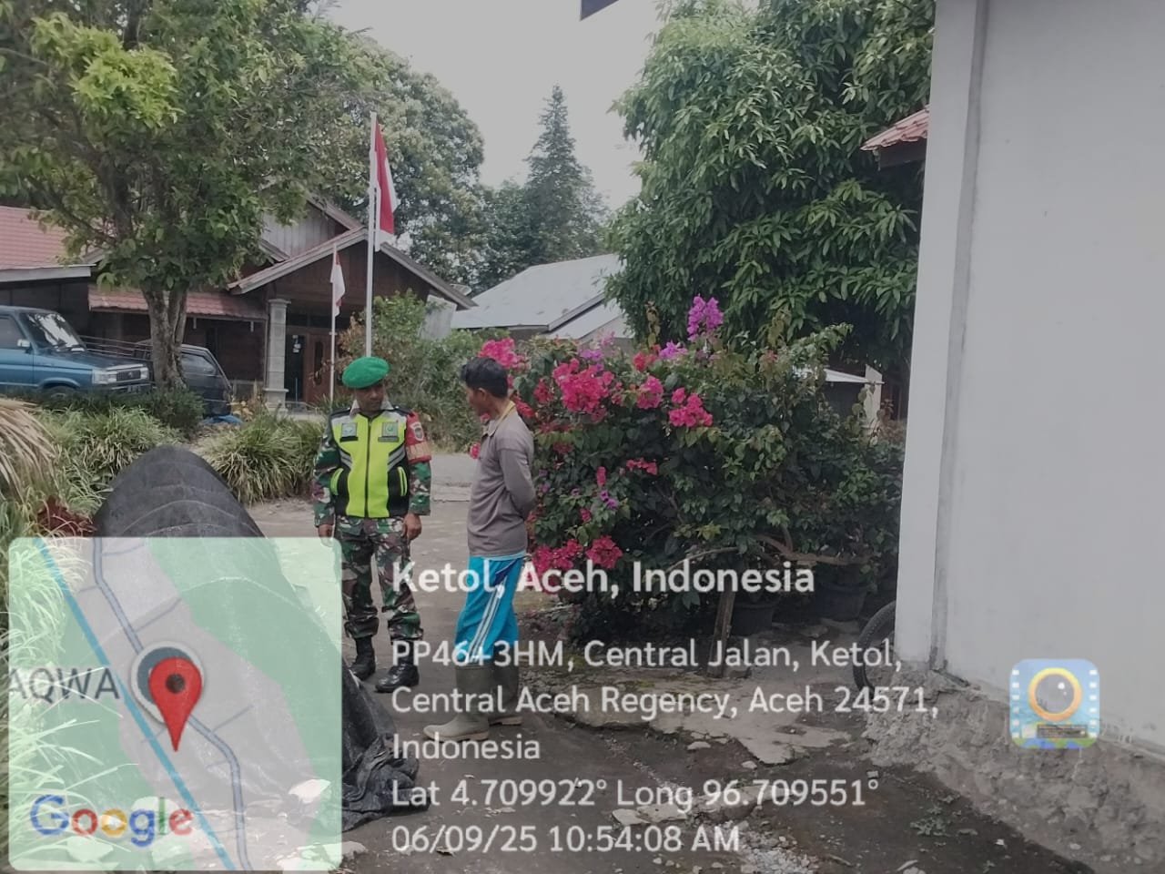 Aceh Tengah, Satupena.co.id. – Babinsa Koramil 09/Ketol, Kodim 0106/Aceh Tengah, Sertu Muzakir melaksanakan kegiatan komunikasi sosial (Komsos) bersama warga binaan di Desa Jalan Tengah, Kecamatan Ketol, Kabupaten Aceh Tengah, Minggu (07/09/2025).