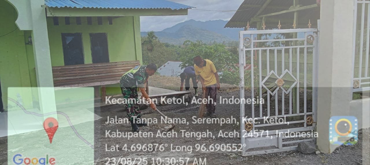 Aceh Tengah, Satupena.co.id. – Dalam upaya meningkatkan kebersamaan dan kepedulian terhadap lingkungan, Babinsa Koramil 09/Ketol, Kodim 0106/Aceh Tengah, Sertu Subeno melaksanakan kegiatan gotong royong pembersihan Masjid Al-Falah bersama masyarakat Desa Serempah, Kecamatan Ketol, Kabupaten Aceh Tengah, pada Sabtu (23/8/2025).