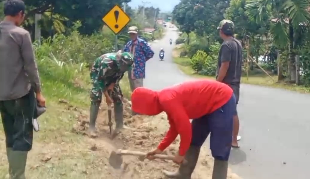 Terlihat dalam kegiatan itu, Serda Suherman dan warga bekerja bahu-membahu menggali tanah dan membentuk saluran air di sisi jalan. Gotong royong ini juga menjadi sarana mempererat hubungan Babinsa dengan warga binaan, serta menumbuhkan semangat kebersamaan dalam menjaga fasilitas umum desa.