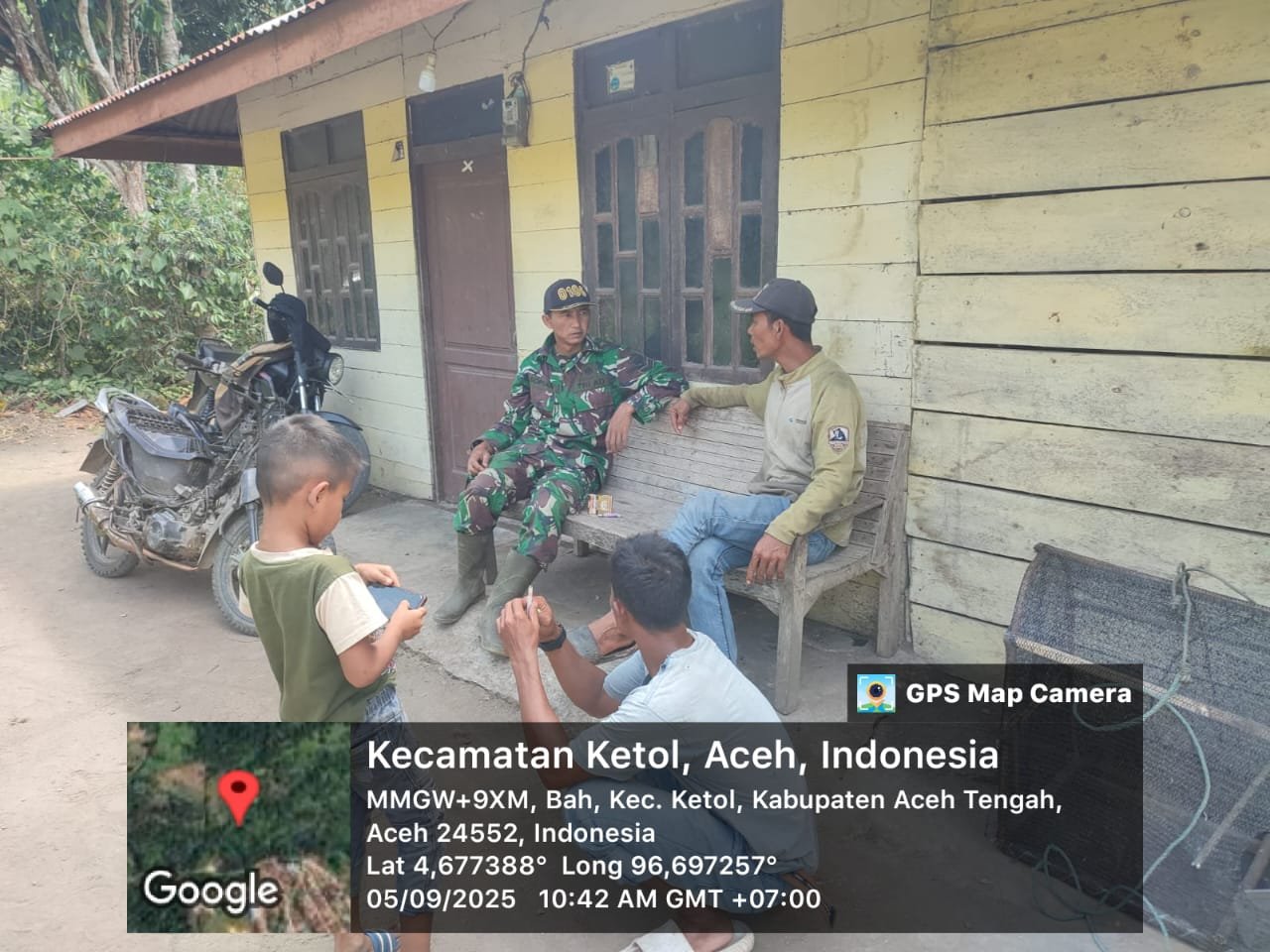 Aceh Tengah, Satupena.co.id. – Pada hari Sabtu (06/09/2025), Babinsa Koramil 09/Ketol, Kodim 0106/Aceh Tengah, Sertu Sopian melaksanakan kegiatan komunikasi sosial (Komsos) bersama warga binaan di Desa Bah, Kecamatan Ketol, Kabupaten Aceh Tengah.