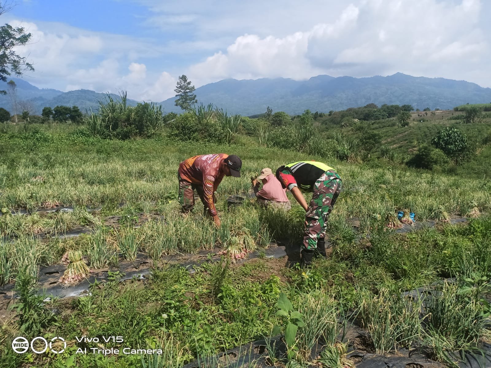 Babinsa Koramil 09/Ketol Bantu Warga Panen Bawang Merah di Desa Rejewali