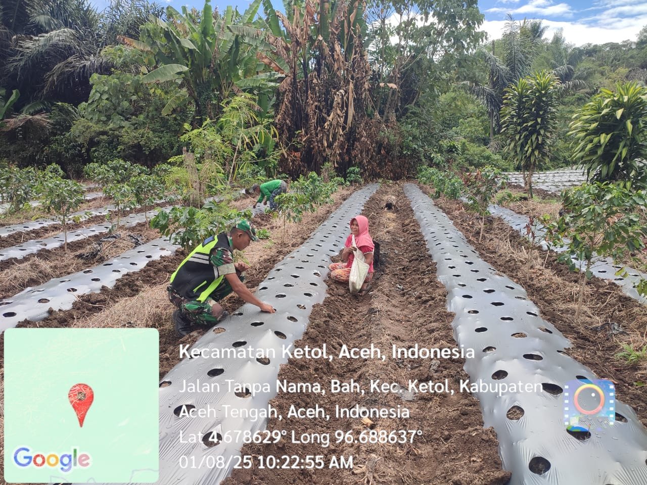 Aceh Tengah, Satupena.co.id.– Dalam rangka mendukung program ketahanan pangan nasional, Babinsa Koramil 09/Ketol, Kodim 0106/Aceh Tengah, Sertu Sopian, melaksanakan kegiatan pendampingan kepada warga desa binaan dengan membantu penanaman bawang merah jenis Tajuk di Desa Bah, Kecamatan Ketol, Kabupaten Aceh Tengah, pada Sabtu (02/08/2025).