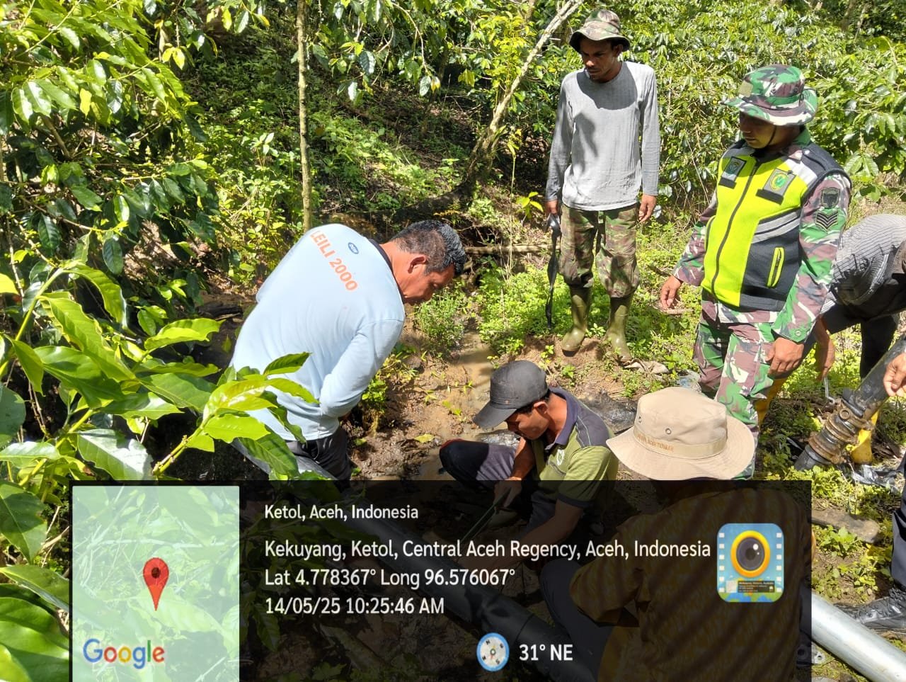Aceh Tengah, Satupena.co.id.– Serma Edi Suryono, Babinsa Koramil 09/Ketol, Kodim 0106/Aceh Tengah, bersama Bhabinkamtibmas Aipda Subandi serta aparatur Desa Kekuyang melaksanakan kegiatan gotong royong memperbaiki pipa air bersih yang mengalami kebocoran.Kamis, 15 Mei 2025,