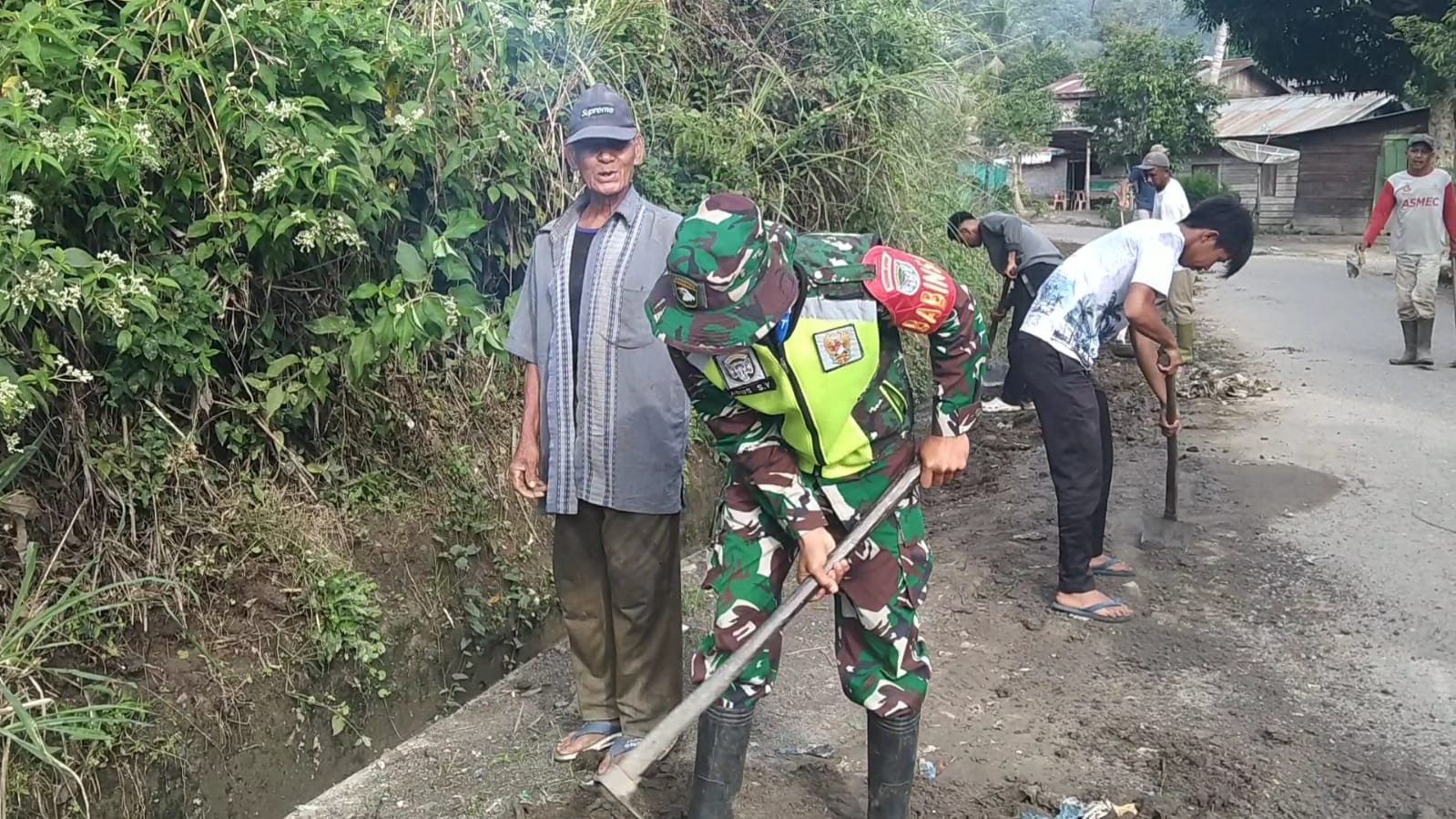 Babinsa Koramil 09/Ketol Bersama Warga Gelar Gotong Royong Bersihkan Jalan