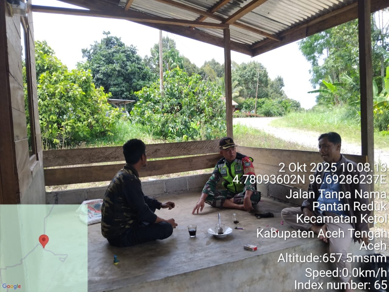 Aceh Tengah, Satupena.co.id– Babinsa Koramil 09/Ketol, Kodim 0106/Aceh Tengah, melaksanakan kegiatan Komunikasi Sosial (Komsos) bersama aparatur desa di Desa Pantan Reduk, Kecamatan Ketol, Kabupaten Aceh Tengah, pada Jumat (4/10/2025) pukul 10.30 WIB.