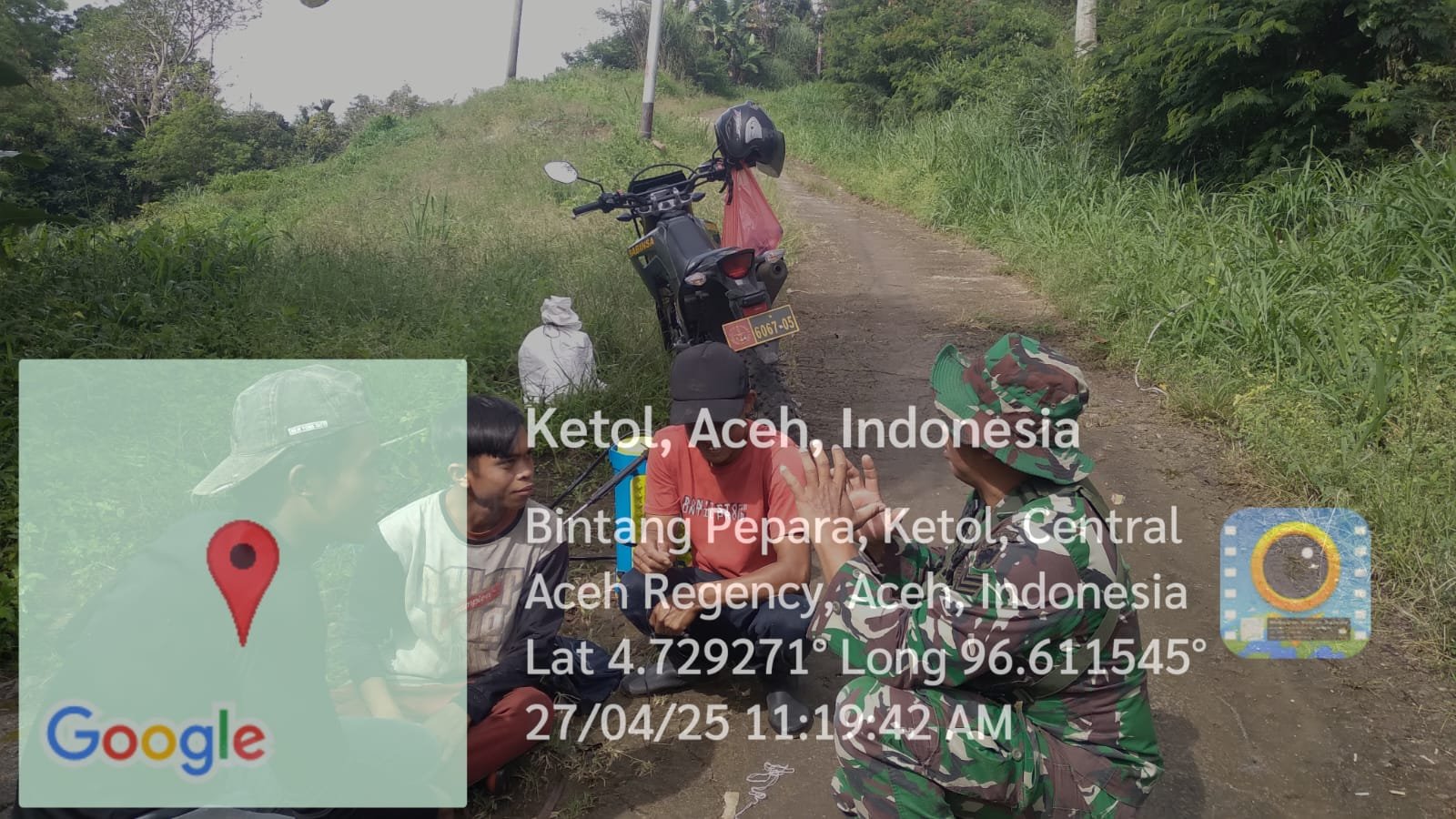 Aceh Tengah, Satupena.co.id– Babinsa Koramil 09/Ketol, Kodim 0106/Aceh Tengah, Serka Arif Hananto melaksanakan kegiatan komunikasi sosial (Komsos) dengan masyarakat Dusun 2 Bintang Tunyang, Desa Bintang Pepara, Kecamatan Ketol, Kabupaten Aceh Tengah, pada Senin (28 April 2025.