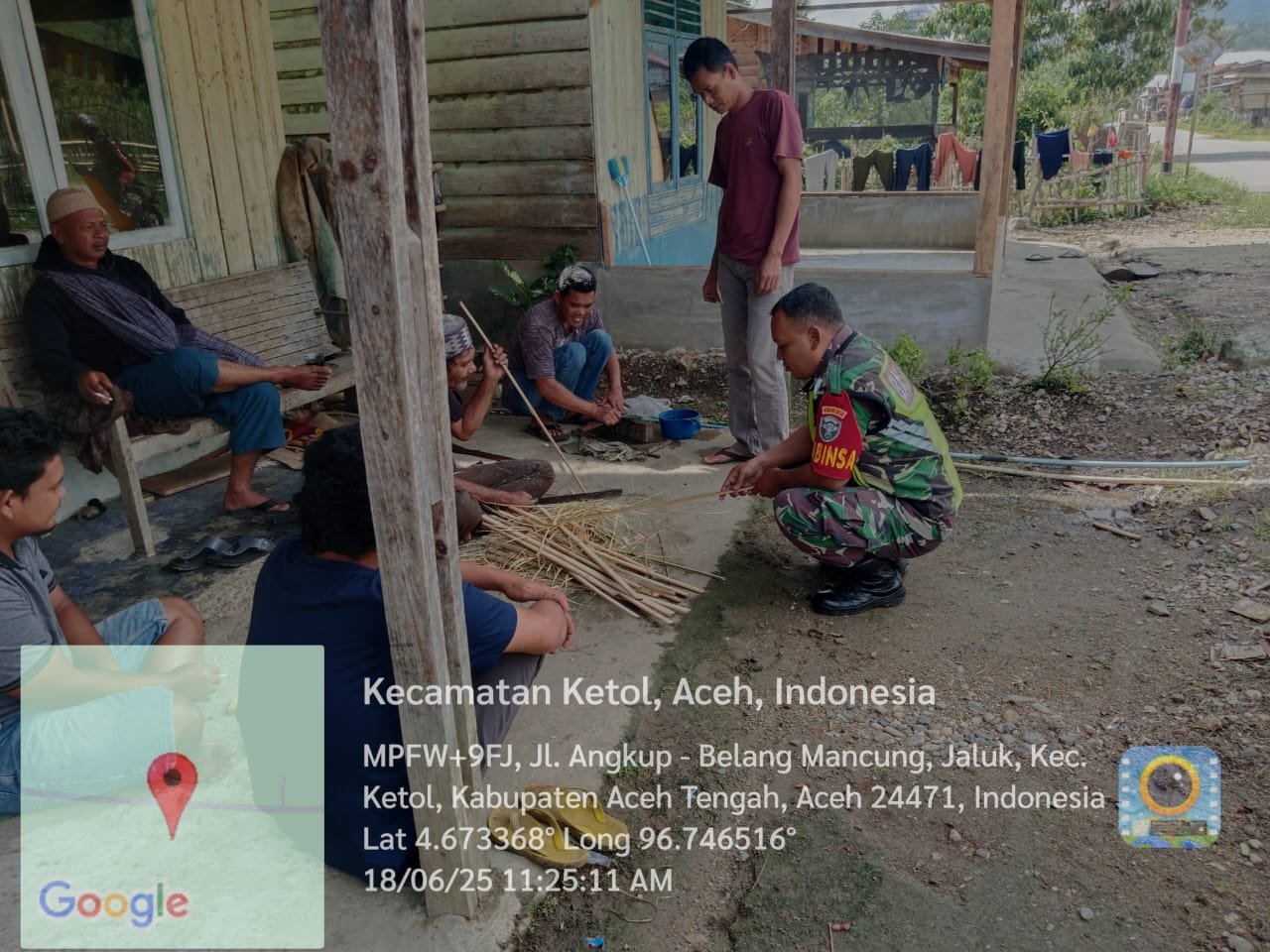 Aceh Tengah, Satupena.co.id – Dalam rangka menjaga komunikasi dan sinergitas dengan warga binaan, Babinsa Koramil 09/Ketol, Kodim 0106/Aceh Tengah, Sertu Hendra Kusuma melaksanakan kegiatan Komunikasi Sosial (Komsos) bersama masyarakat Desa Blang Mancung, Kecamatan Ketol, Kabupaten Aceh Tengah, pada Kamis (18/6/2025).