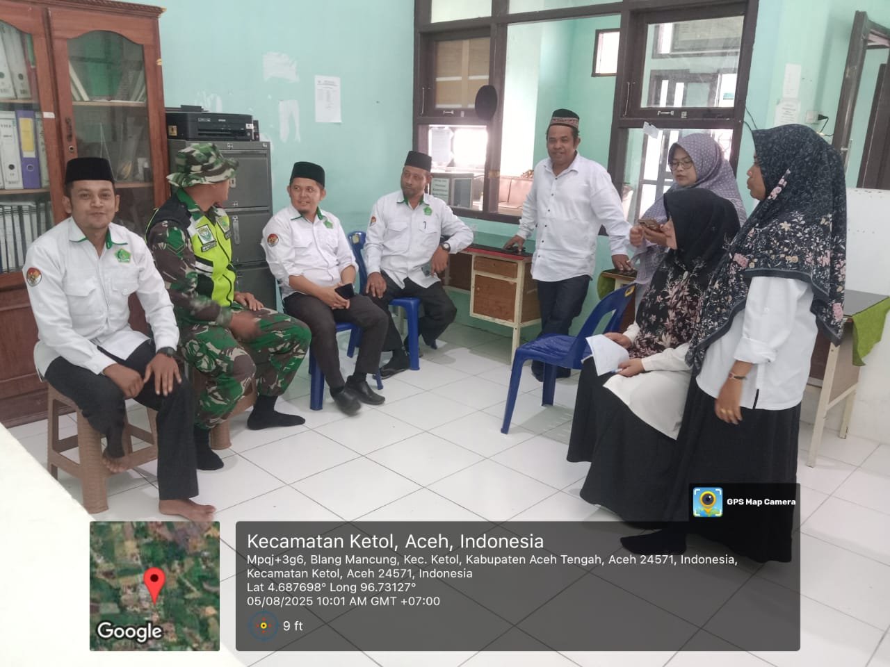 Kegiatan tersebut berlangsung di Kantor KUA Desa Blang Mancung, Kecamatan Ketol, Kabupaten Aceh Tengah. Dalam kesempatan itu, Serda Aan Puji berdiskusi hangat dengan para pegawai KUA membahas berbagai hal terkait pembinaan masyarakat, khususnya dalam bidang keagamaan dan sosial kemasyarakatan.