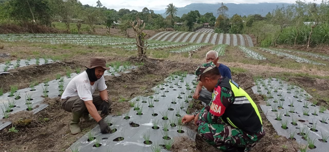 Aceh Tengah,Satupena.co.id. Babinsa Koramil 09/Ketol, Kodim 0106 Aceh Tengah, Sertu Darwanto, melaksanakan kegiatan komunikasi sosial (Komsos) dengan para petani bawang merah di Desa Selun, Kecamatan Ketol, Kabupaten Aceh Tengah, pada Senin (17/2/2025).