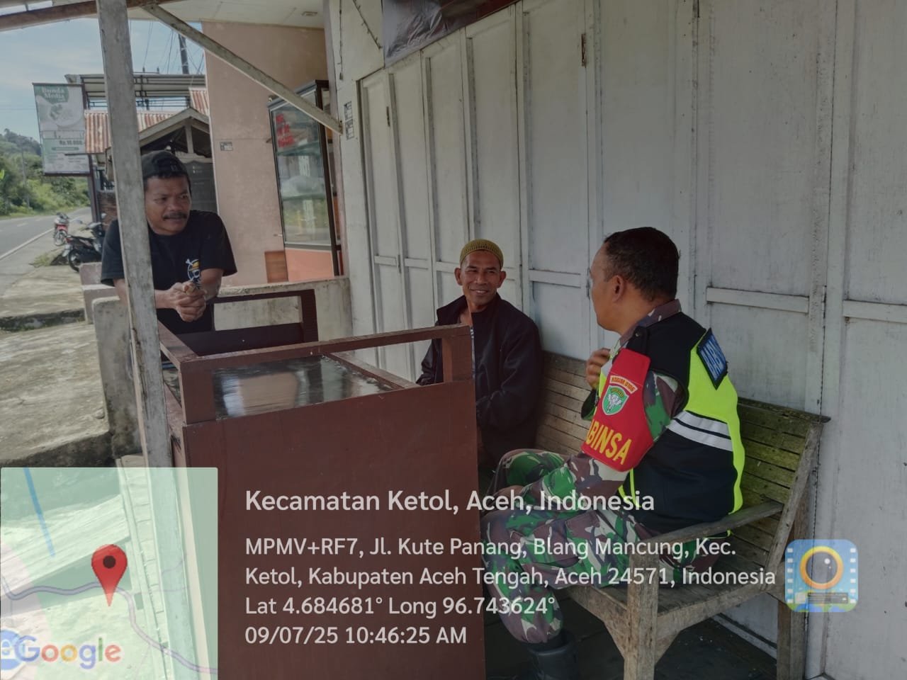 Aceh Tengah, Satupena.co.id.– Dalam upaya mempererat hubungan dan memperkuat kemanunggalan TNI dengan rakyat, Babinsa Koramil 09/Ketol Kodim 0106/Aceh Tengah, Sertu Hendra Kusuma, melaksanakan kegiatan Komunikasi Sosial (Komsos) bersama warga binaan di Desa Blang Mancung, Kecamatan Ketol, Kabupaten Aceh Tengah, pada Rabu (9/7/2025).