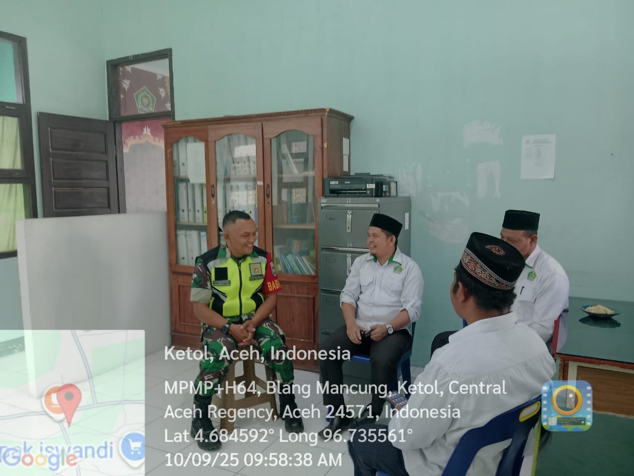 Aceh Tengah, Satupena.co.id. – Dalam rangka mempererat sinergitas dan membangun komunikasi yang baik dengan instansi pemerintah, Babinsa Koramil 09/Ketol, Kodim 0106/Aceh Tengah, Sertu Hendra Kusuma melaksanakan kegiatan komunikasi sosial (Komsos) bersama pegawai Kantor Urusan Agama (KUA) di Desa Blang Mancung, Kecamatan Ketol, Kabupaten Aceh Tengah, Rabu (10/9/2025).