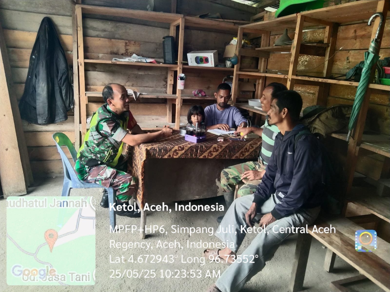 Aceh Tengah, Satupena.co.id. – Babinsa Koramil 09/Ketol Kodim 0106/Aceh Tengah, Serda Agus Supriyadi, melaksanakan kegiatan Komunikasi Sosial (Komsos) bersama masyarakat di Desa Simpang Juli, Kecamatan Ketol, Kabupaten Aceh Tengah.Pada hari Senin, 26 Mei 2025