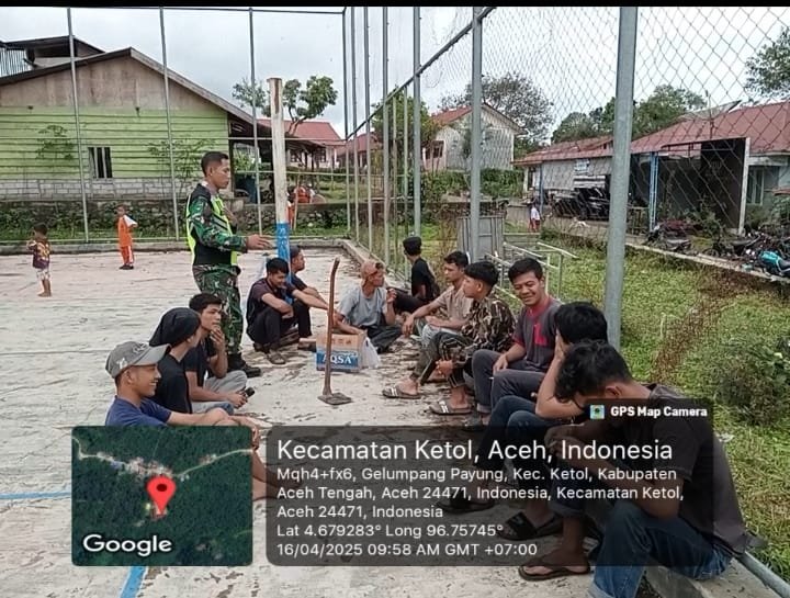 Aceh Tengah, Satupena.co.id. – Dalam upaya membangun semangat bela negara dan memperkenalkan peluang pengabdian melalui jalur militer, Babinsa Koramil 09/Ketol Kodim 0106/Aceh Tengah, Sertu Supriatna Jamil, melaksanakan kegiatan Komunikasi Sosial (Komsos) bersama warga binaan di Desa Geulumpang Payung, Kecamatan Ketol, pada Rabu, 16 April 2025.