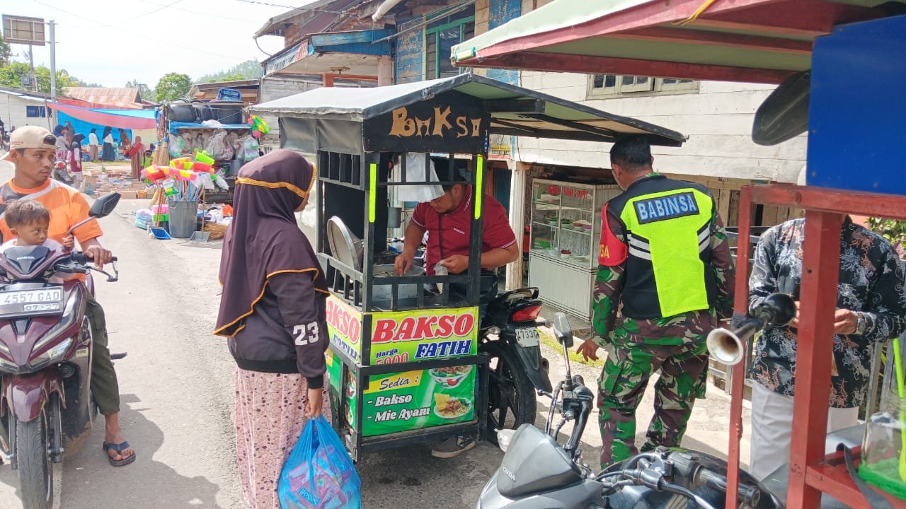 Kegiatan tersebut dilakukan di seputaran kawasan pasar tradisional Linge, di mana Serda Hazis menyempatkan diri berdialog langsung dengan para pedagang, salah satunya penjual bakso keliling. Dalam kesempatan itu, Babinsa memberikan imbauan agar pedagang selalu memperhatikan kebersihan tempat dagangan, peralatan memasak, serta kualitas bahan makanan yang digunakan.