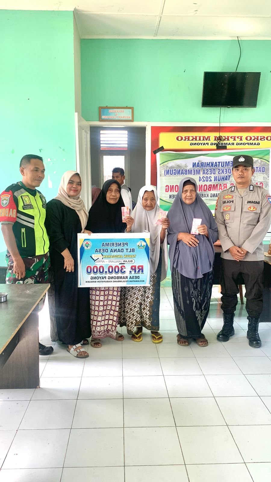 Bireuen,satupena.co.id – Babinsa Posramil Peulimbang Kodim 0111/Bireuen Tengku Indra melaksanakan kegiatan pendampingan pembagian BLT DD ( Bantuan Langsung Tunai Dana Desa ) kepada masyarakat dan memastikan agar dalam penyaluran bantuan tersebut berjalan tertib aman dan lancar bertempat di Desa Rambong Payong Kecamatan Peulimbang Kabupaten Bireuen. Kamis 27 juli 2024.