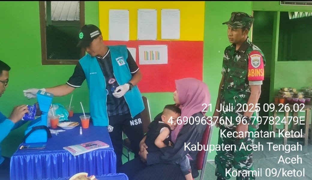 Aceh Tengah, Satupena.co.id. – Dalam upaya mendukung program kesehatan masyarakat, Babinsa Koramil 09/Ketol, Kodim 0106/Aceh Tengah, Serda Suherman, turut serta dalam kegiatan Pos Pelayanan Terpadu (Posyandu) yang berlangsung di Polindes Desa Genting Bulen, Kecamatan Ketol, Kabupaten Aceh Tengah. 21 Juli 2025.