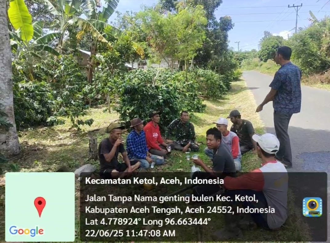 Aceh Tengah,Satupena.co.id. – Dalam upaya mempererat hubungan dan sinergi antara TNI dengan masyarakat, Babinsa Koramil 09/Ketol, Kodim 0106/Aceh Tengah, Serda Suherman melaksanakan kegiatan komunikasi sosial (komsos) bersama warga binaannya di Desa Genting Bulen, Kecamatan Ketol, Kabupaten Aceh Tengah, pada Senin (23/6/2025).
