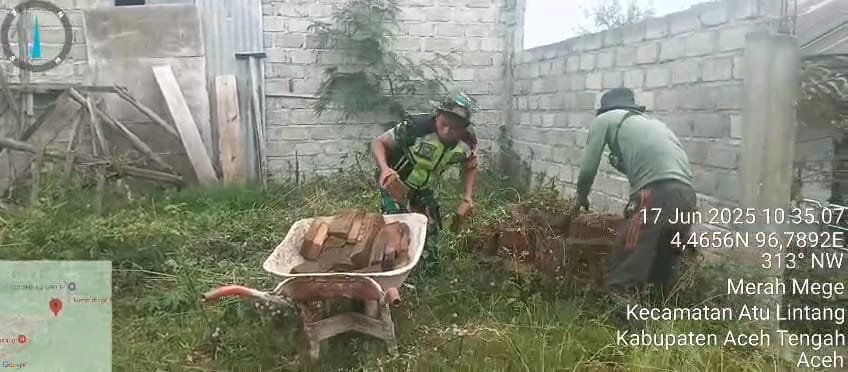 Atu Lintang, Satupena.co.id. – Wujud kepedulian dan kemanunggalan TNI dengan rakyat terus ditunjukkan oleh Babinsa Koramil 07/Atu Lintang, Kodim 0106/Aceh Tengah. Pada Rabu (18/06/2025), Serda Zikran Sahadat turun langsung membantu warga binaannya dalam kegiatan karya bakti di Desa Merah Mege, Kecamatan Atu Lintang, Kabupaten Aceh Tengah.