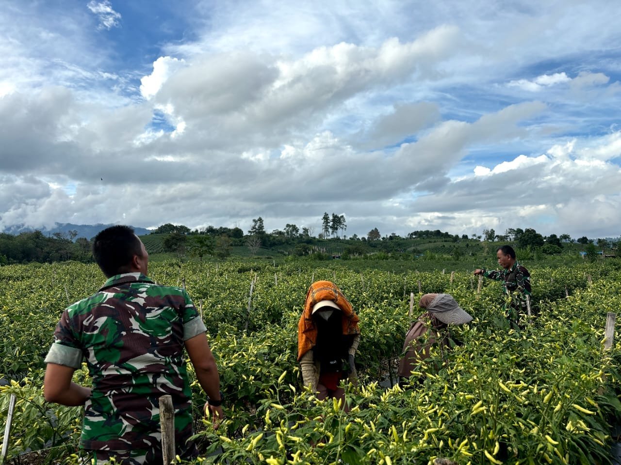 Takengon -satupena.co.id: Dalam upaya mendukung program ketahanan pangan yang digalakkan oleh pemerintah, danpos kute panang Serma Miswan dan anggota pos ramil 02/Bebesen kodim 0106/ateng aktif terjun ke lapangan membantu kelompok tani MEKAR panen cabe di desa balik Kecamatan kute panang kabupaten Aceh tengah. Langkah ini menjadi bagian dari sinergi antara TNI dan masyarakat untuk meningkatkan produksi pangan nasional.